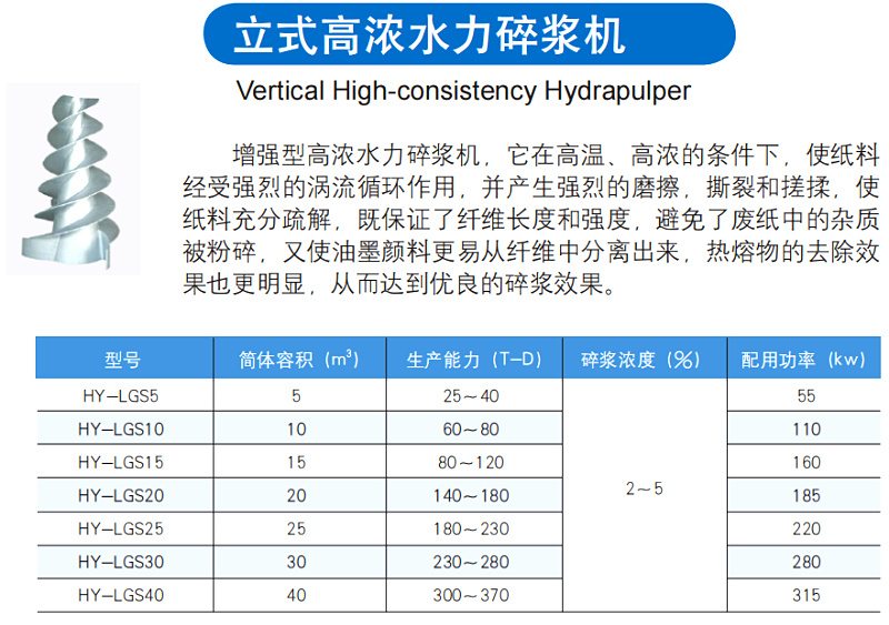 立式高浓水力碎浆机